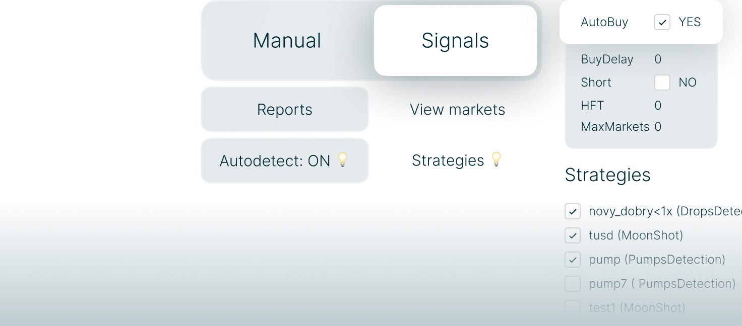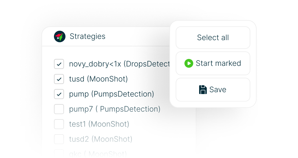 Built-in strategies allow you to launch automated trading in just a few clicks — without the need to configure everything manually.