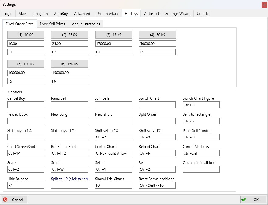 This tab allows you to configure keyboard shortcuts for quickly executing frequently used actions in the Moonbot terminal. This significantly speeds up operation compared to using the mouse and manually searching for functions.