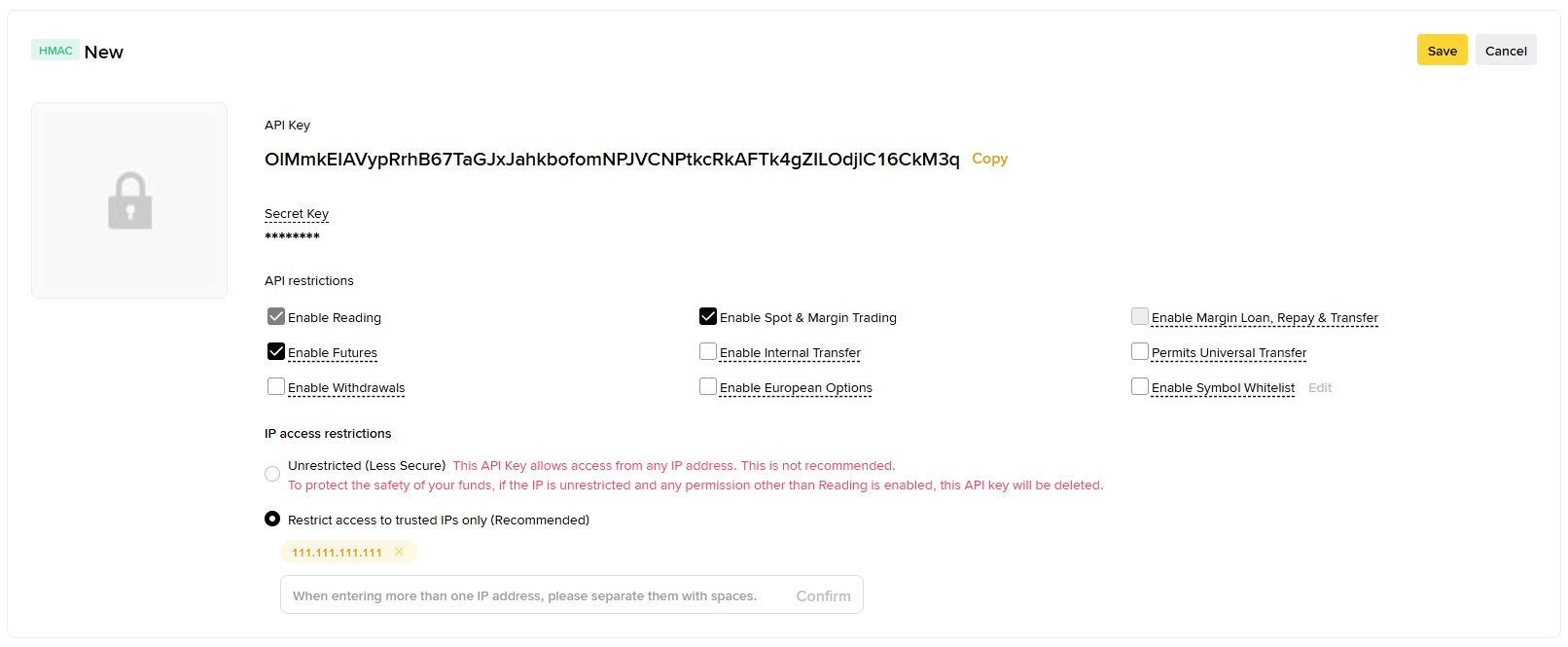 If you're currently using the FREE version, you will only be able to trade on the spot market only. However, it's recommended to create universal API keys for both spot and futures trading — this will allow you to use the same keys in the PRO version later, without needing to configure them again. To create universal API keys, check the boxes for Enable Futures and Enable Spot & Margin Trading.
