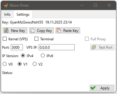 1) Enable the Kernel checkmark(VPS) on the VPS. Select and open a UDP port in the firewall. If necessary, open a port in the VPS provider's PC (for example, Amazon requires this). Click Apply. To check that you have opened the port, use the Test Port button. (verification is carried out by pinging our server; if you have opened the port, but made a whitelist of IP addresses from which access is allowed, the verification will not work - it's not a big deal, in this case you can check by connecting the client to the kernel).