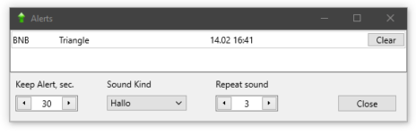 To open the market click on the coin in the list. To remove the alert (but not the figure itself) click the “Clear” button.