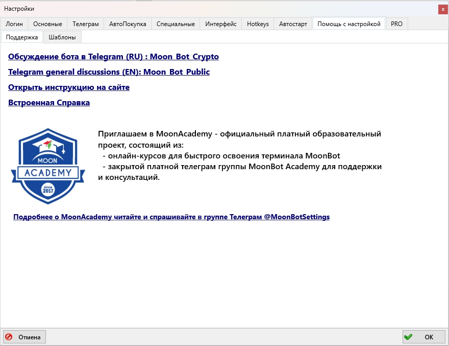 📢 https://t.me/MoonBotSettings/190397 с информацией о MoonAcademy.