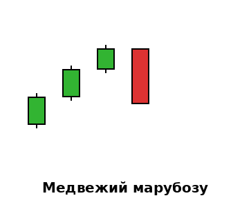 Свечи без теней или с минимальными тенями, где цена открытия совпадает с одним экстремумом, а закрытия — с другим. Белая марубозу (открытие = минимум, закрытие = максимум) показывает сильное бычье настроение, чёрная — медвежье.