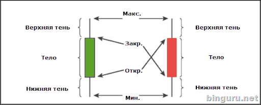 3. Изучите, как выглядят основные элементы свечи (тело, тени, цвета)